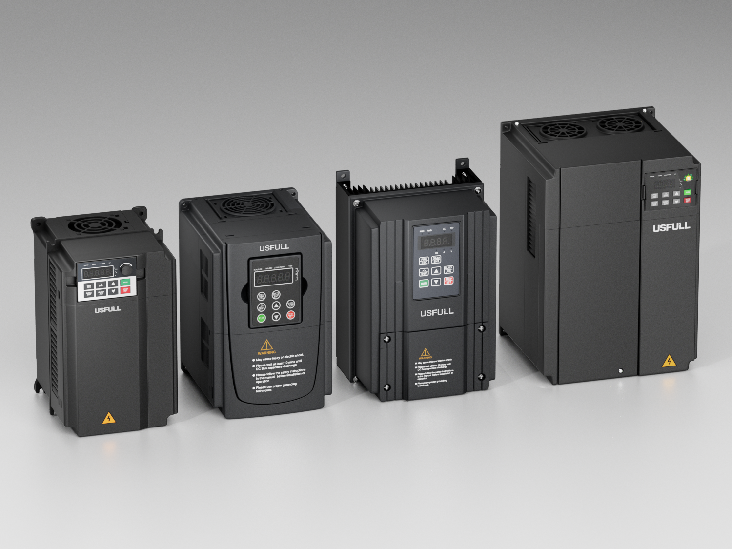 USFULL生產涵蓋全功率范圍(0.75kW至630kW)的逆變器,包括通用型號以及針對風扇、水泵、機床主軸等應用的專用型號,能夠滿足精確速度調節和節能的需求。采用智能制造和全流程質量控制。